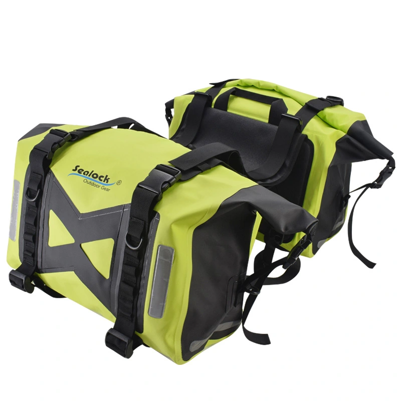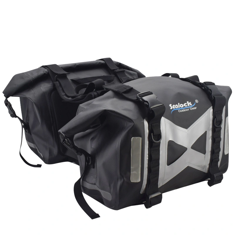 Носивост ове 60Л водоотпорне бисаге за мотоцикле које се могу одвојити са обе стране је 50 кг и може да складишти шлемове, флаше за воду, одећу, опрему за камповање и још много тога. материјал, беспрекорно заварен, 100% водоотпоран и лак за чишћење. Не брините да ће вам киша и снег поквасити пртљаг. Ако ћете возити на велике удаљености, наш материјал за водоотпорне торбе СЕАЛОЦК је издржљивији како би ваше путне ствари биле безбедније. Рефлектујући логотипи су додати са обе стране како би се побољшала ноћна видљивост. То је погодније за безбедну вожњу.